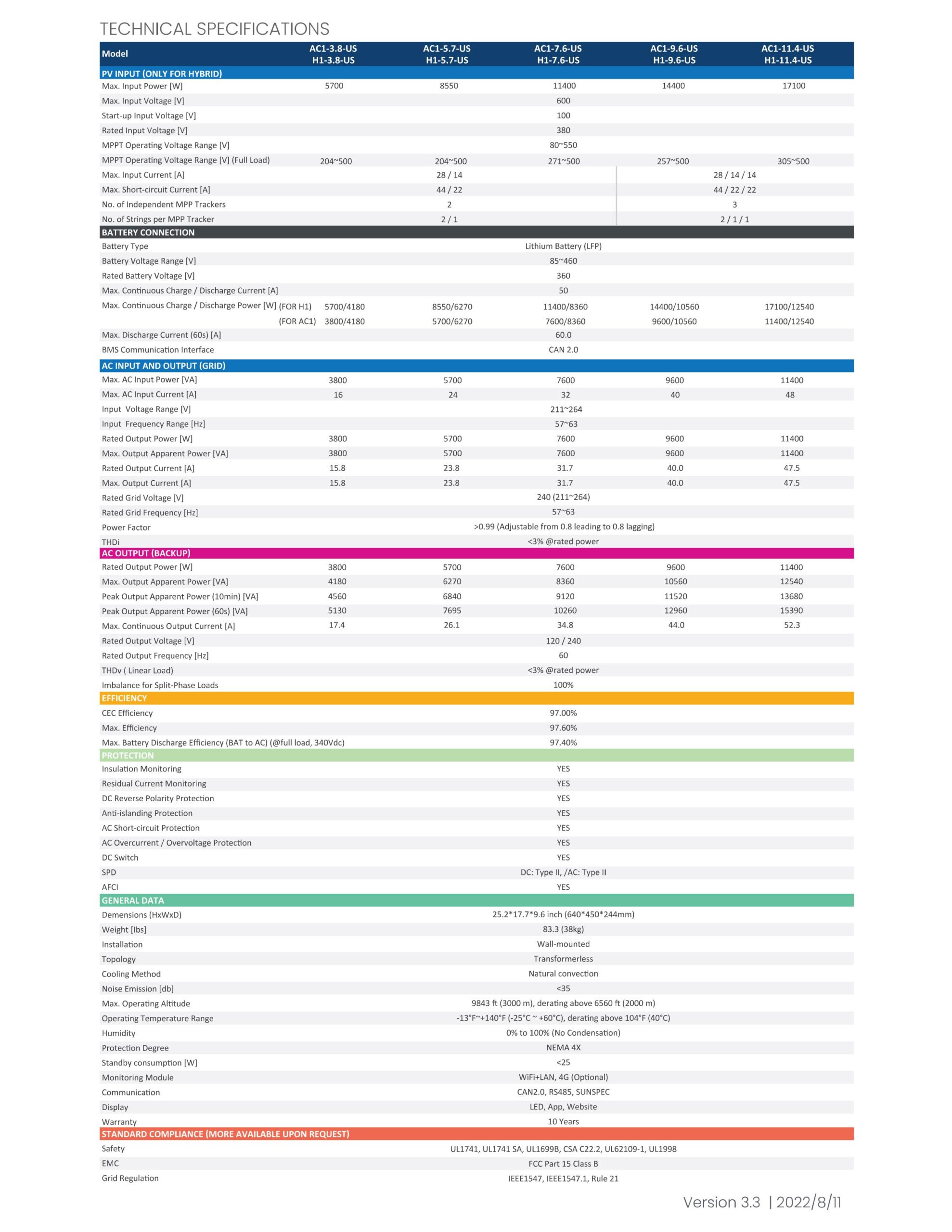Batería de Litio FOX H1&AC1-3.8-US / 5.7 / 7.6 / 9.6 / 11.4